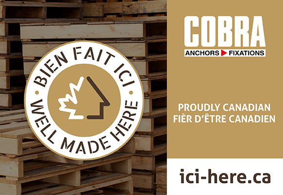 Cobra Fixations Ltée est donc fier d’être parmi les nombreuses corporations professionnelles qui s’associent au mouvement croissant en faveur de l’achat local, de la promotion de manufacturiers fiables et de produits durables, du soutien aux régions et aux emplois du secteur primaire en soutenant ‘Bien fait ici’.