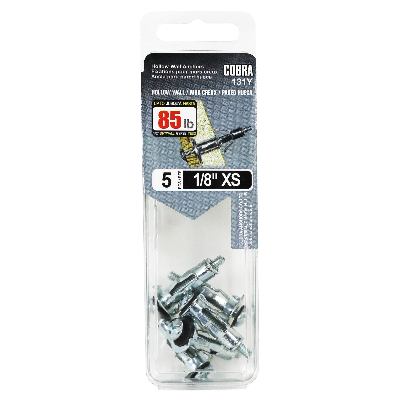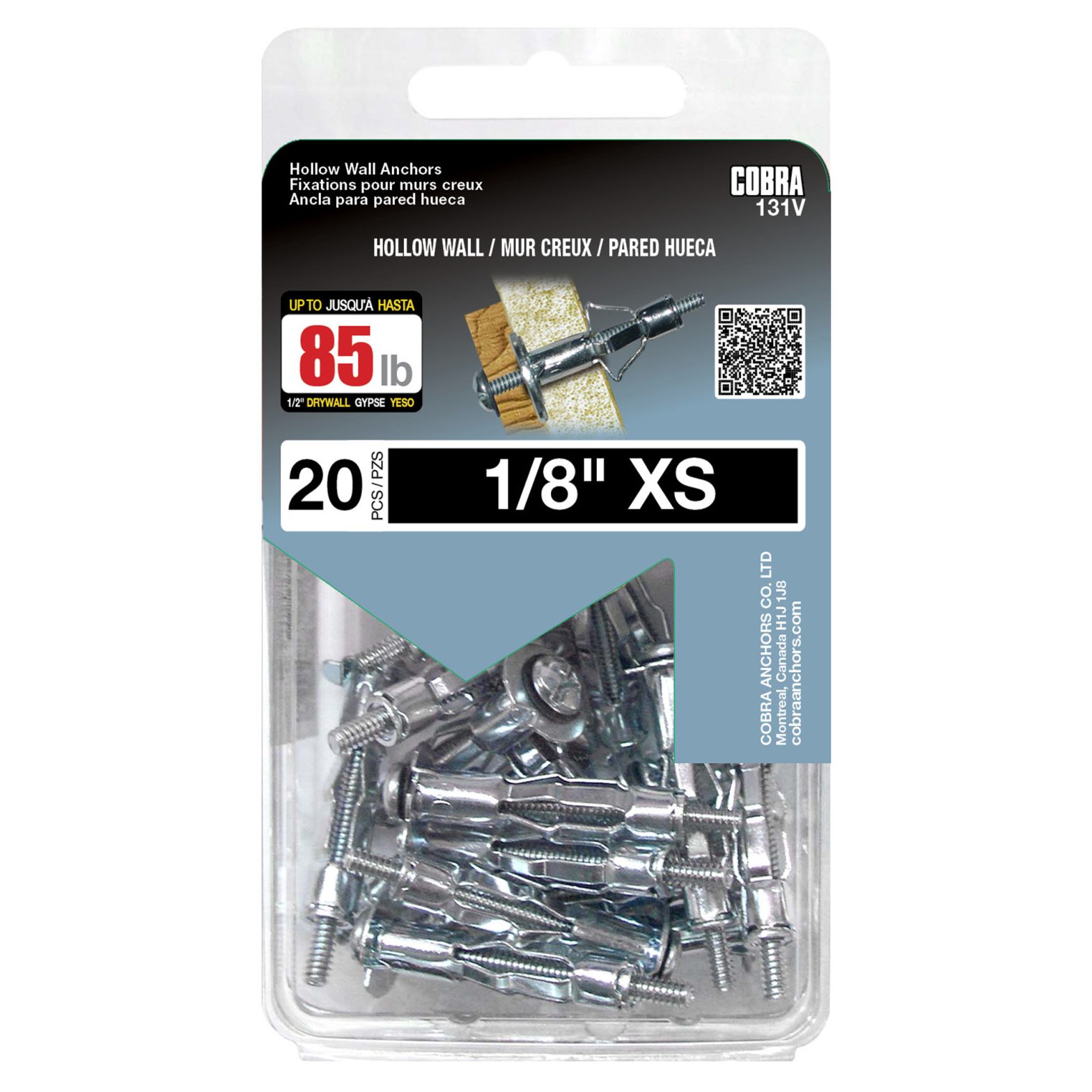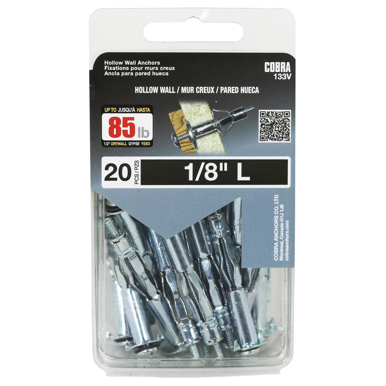 La fixation pour mur creux est entièrement fabriquée en acier et résiste aux vibrations. La tête de la vis s’adapte à trois types de pointes de tournevis : Philips/Plate. Pour un résultat plus rapide et une plus grande facilité d’installation, essayez l’ancrage autoforeur WallGripper® de Cobra.