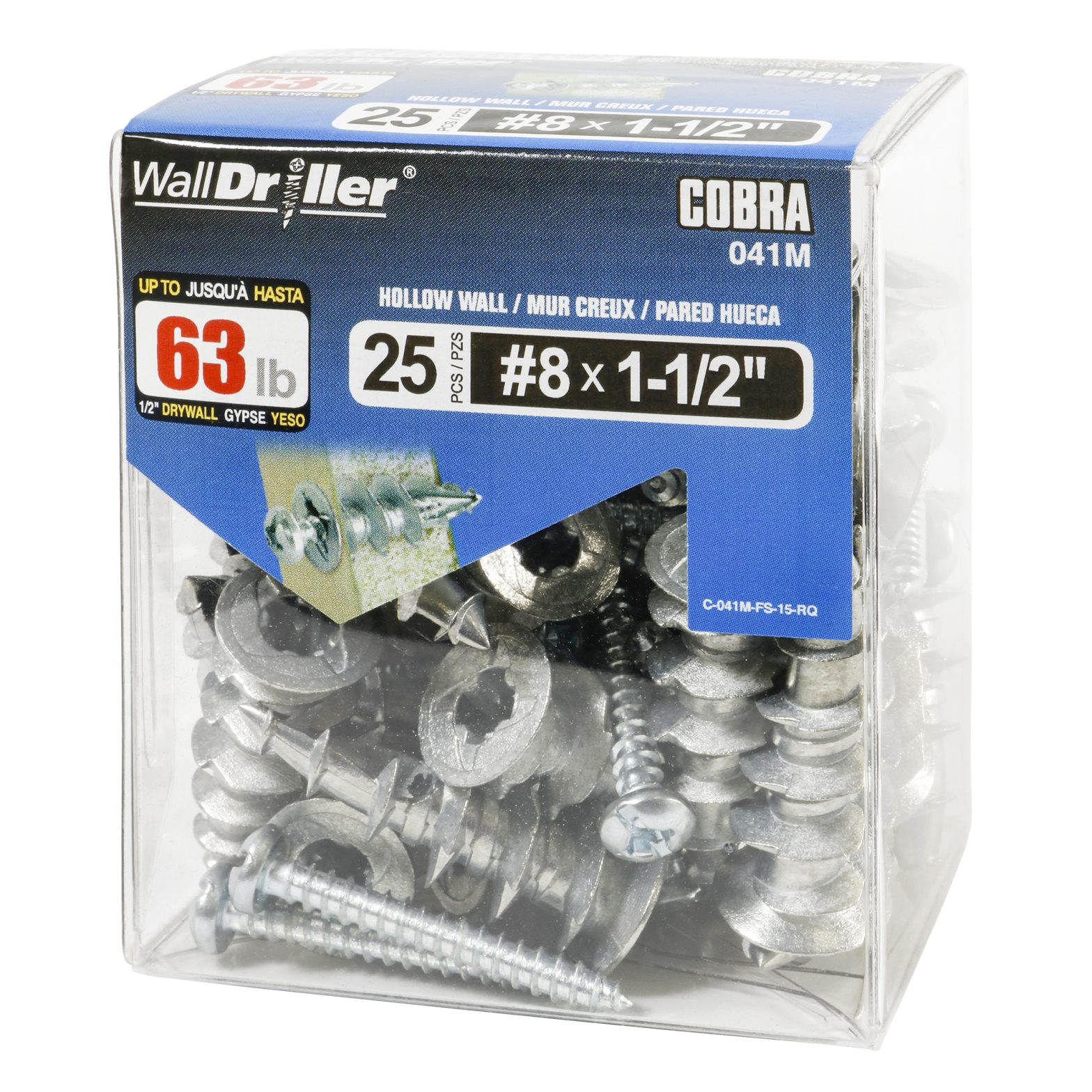 Le WallDriller® est conçu pour offrir la puissance maximale de retenue dans les panneaux de gypse : une fine pointe centrée qui guide l’ancrage dans le mur avec une parfaite précision. Une bordure acérée coupe profondément dans le trou sans endommager le gypse pour assurer une capacité maximale de retenue et de stabilité. Le filetage tranchant réduit la force requise pour couper le matériau ce qui en fait un ancrage autoforeur. Disponibles en #6 et #8L.